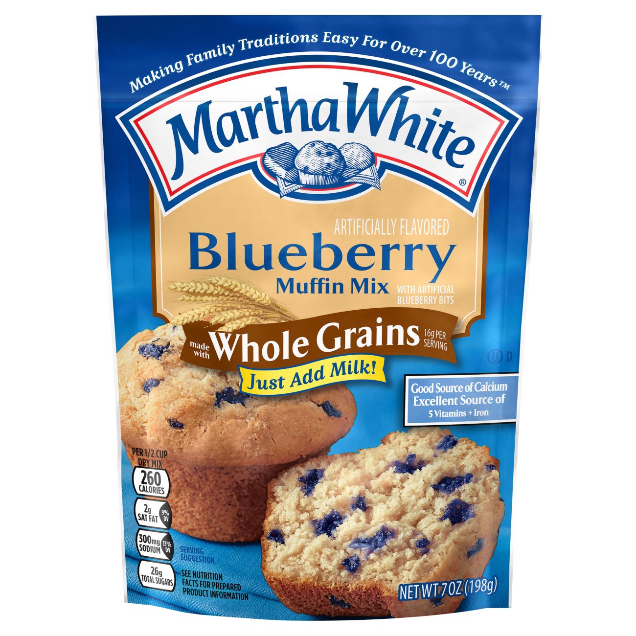 Get your kinfolk grinning in the mornings with martha white® blueberry flavored muffin mix.